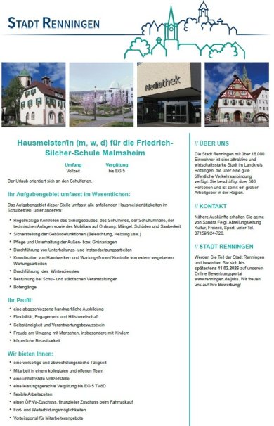 Hausmeister/in gesucht