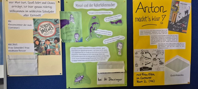 Im Vorfeld hatten alle Lehrkräfte ein Plakat zu dem Buch, welches sie in der Gruppe vorlesen wollten, erstellt. So hatten alle Schüler:innen Zeit sich für ein Buch zu entscheiden. Am Montagmorgen konnten sich die Schüler:innen dann die Eintrittskarten für ihr Buch holen. In der 5. Stunden gingen alle Schüler:innen in ihren Vorleseraum. Es wurden viele verschiedene Bücher vorgelesen und die Schüler:innen hörten gespannt zu. Die zweite Vorlesestunde findet am Freitag statt.