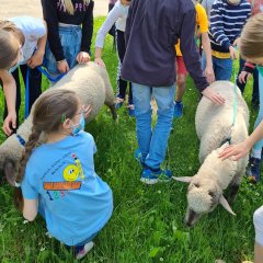 Die Schüler:innen aller Klassen hatten die Möglichkeit die Lämmer zu streicheln und sie mit Gras und Blättern zu füttern. Fläschchen bekommen die beiden jetzt nicht mehr. Mittlerweile sind sie ziemlich gewachsen und wiegen 40 Kg. Die Wolle ist nun richtig flauschig geworden und viele Kinder würden die beiden gerne als Kuscheltier mit nach Hause nehmen.